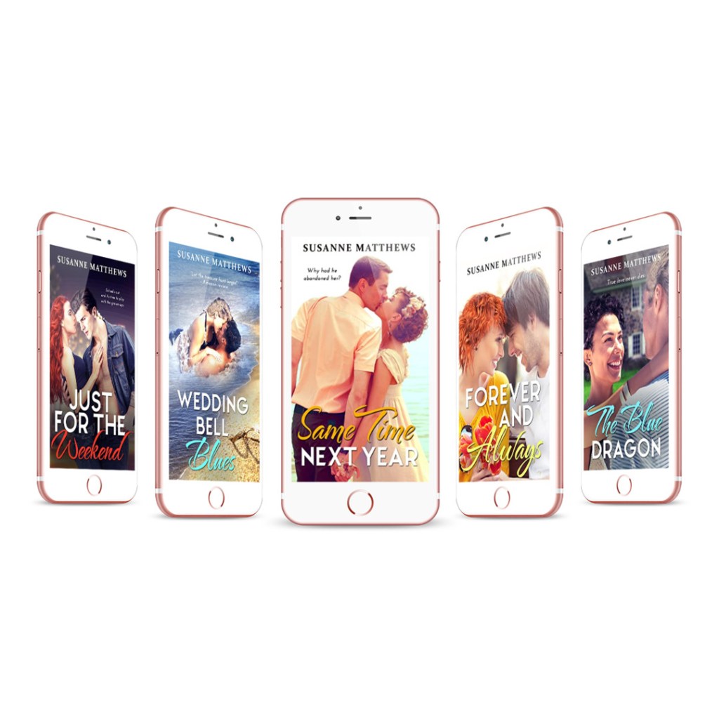 While writing those books, I wrote lighter contempoaray romance to cleanse my soul. After my ad course, I realized these books needed a makeover and i gave them one, carefully examining what made these books a series, From that examination came my newest series An All For Love Book, which links some of my contemporary romances together. The books are Just For the Weekend, Wedding Bell Blues, The Blue Dragon, Forever and Always, and Same Time Next Year. What links these stories are their themes–each is a second chance at love story, complicated by secrets that could destroy their relationshps. Here’s the series blurb: Falling in love isn’t always easy, and for the couples in these books, the road to happiness is often complicated and filled with misunderstanding that can last days, weeks, months, years, or even decades. But in the end, love triumphs.