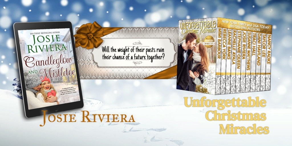 Josie Riviera: Candleglow and Mistletoe – Their unexpected attraction kindles something as warm and sweet as a holiday candle. But the weight of their pasts could turn the promise of their love to ashes. A smalltown, sweet and wholesome romance.