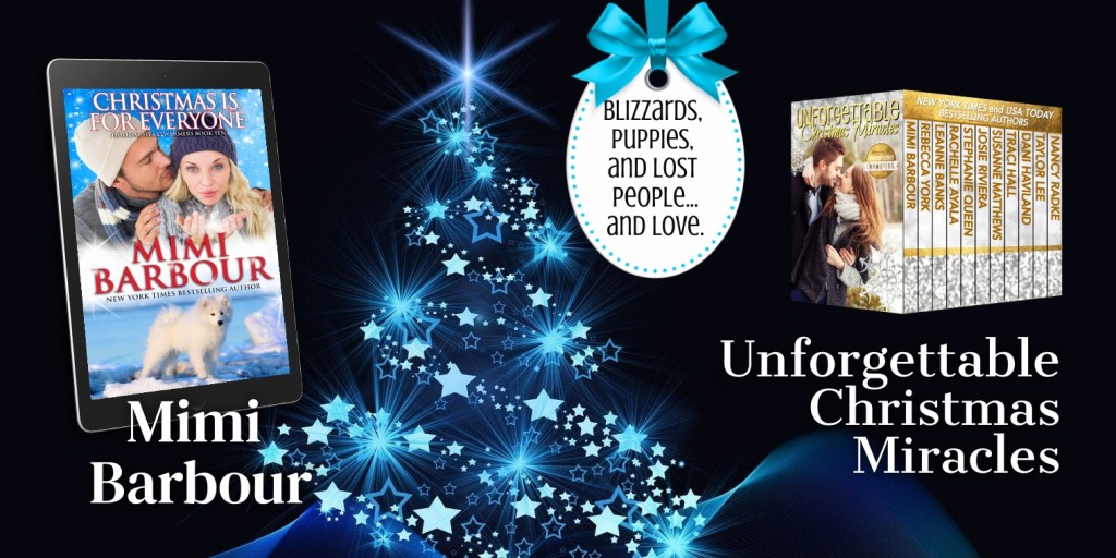 Mimi Barbour: Christmas Is For Everyone – Blizzards, puppies, and lost people. Ginny rescues an old man from freezing and his handsome son saves her and her son from being evicted. Will these strangers discover the true meaning of sharing at Christmas? A smalltown, caring family romance.