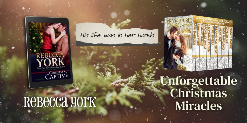 Rebecca York: Christmas Captive – His life was in her hands. Was it attempted murder or a boating accident? Psychic nurse Hannah puts her life at risk by investigating the conniving relatives who want to inherit the comatose man’s fortune. A paranormal romance.