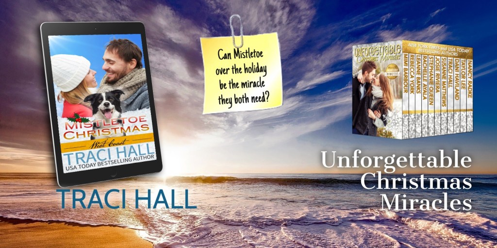 Traci Hall: Mistletoe Christmas – West Coast – Fireworks ignite when a retired Navy officer inherits a seaside cottage, accidentally burning down the deck his first day only to be saved by a sexy firewoman and the station’s dog. Set in their ways, can Mistletoe over the holiday be the miracle they both need? A contemporary military romance.