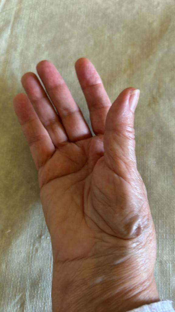 Sadly, mine no longer works properly. In the picture on the right, my hand is open as wide as it gets. If I join the tip of my thumb to the tip of my index finger, I get a lovely D, not the O that indicates a healthy thumb. Note the way my wrist is also swollen. It’s also loaded with arthritis, as are every major joint in my body. Believe me. This is not something I hoped for since there’s no cure. Does it hurt? All the time, but some days are worse than others. Luckily, I’ve adapted the way I use the computer to meet this disability, so its impact on my writing is minimal, but the rest of my lifestyle is about to undergo major changes. Am I happy about it? No, since each minor accident, like last night’s glass, reminds me that sooner or later, I could end up unable to travel or do many of the things I enjoy.