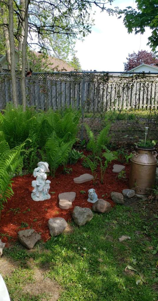 While it took spring a long time to arrive, when it did, it did so with a vengeance. My perennials aren’t usually this lush at this time of the year. The problem with that is that early growth means they’ll probably all be done by August. A couple of years ago, I made the decision not to plant annuals in the ground but to leave them in pots and place them around the perrenials. These pictures were taken two weeks ago. As you can see, the ferns, hostas, and other greenery are quite healthy. I sincerely hope they last the summer.