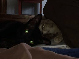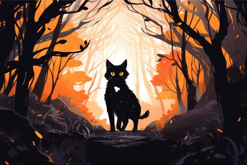 He smiled. “The Cat Sith is easy to identify. It’s all black except for a small white spot in the center of its chest … oh, and its eyes glow in the dark.”