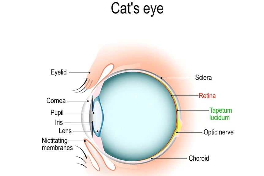 “As for the eye shine, that’s perfectly natural for all cats. The tapetum lucidum is like a little mirror in the back of the eyes of some nocturnal animals. It helps them see better in the dark and it’s what causes the glowing eyes.”